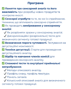✅ Поняття про сенсорний аналіз та його важливість при розробці нових продуктів та контролю якості.