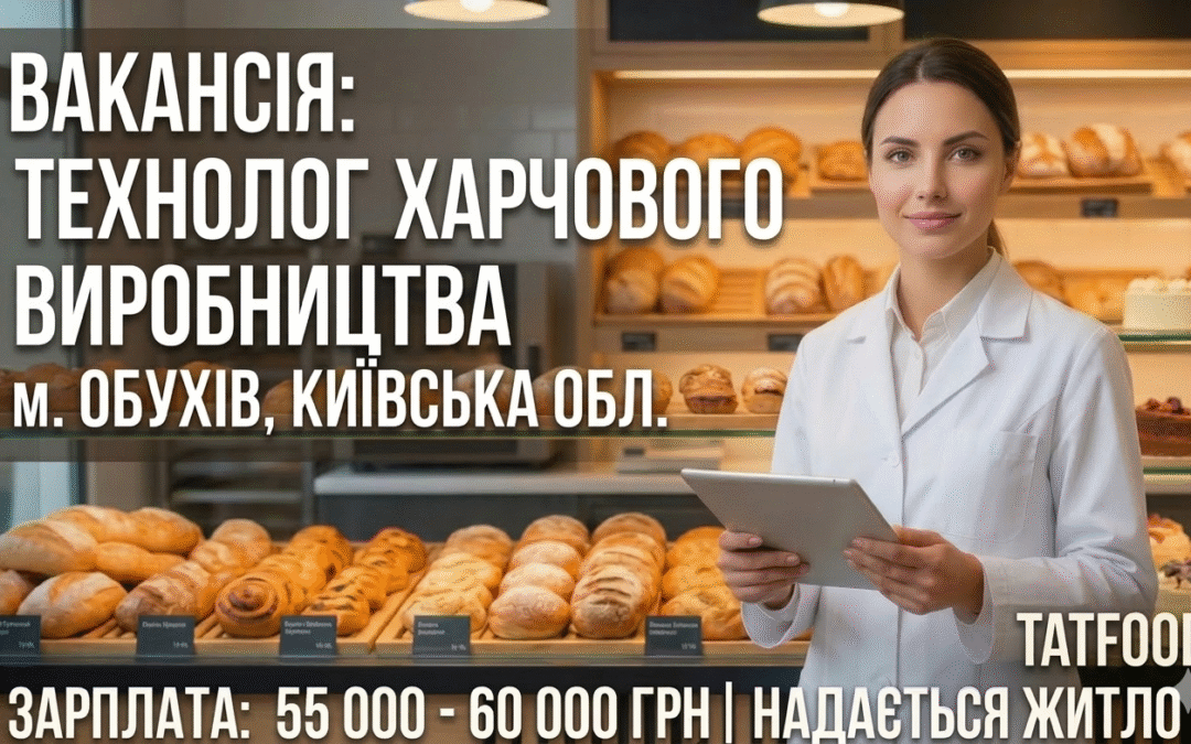 Надсилайте резюме та уточнюйте детальніше 📧 tatfood@ukr.net 💬 Telegram: @tatfoodtech 📞 +38 067 547 50 57